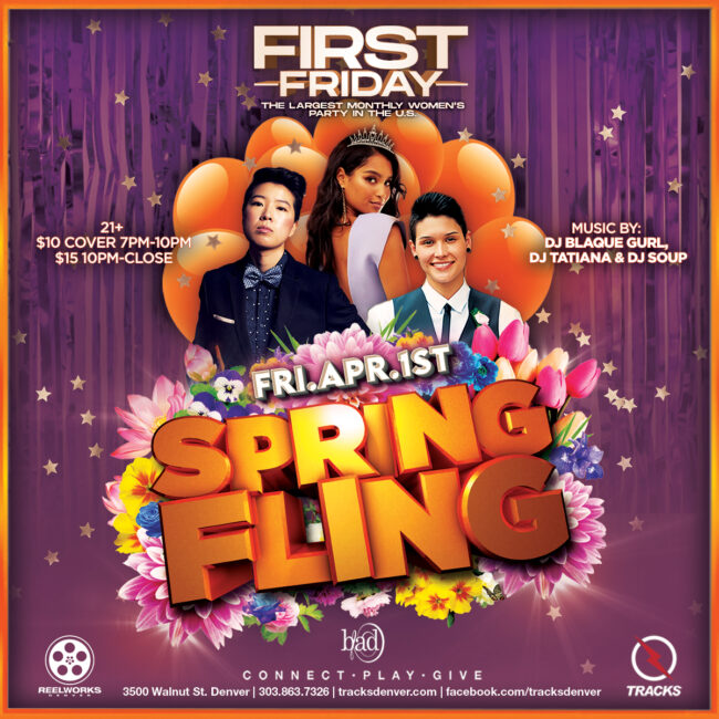 First Friday Spring Fling | Friday April 1st Spring break is here and it’s time to party! First Friday is the nation’s largest monthly Women’s Party! Join us early in the evening for line dancing w/ @dj_soup in @reelworksdenver! Catch @djtatianaofficial bumping a killer set in Tracks & @dj.blaque.gurl.73 throwing it down in the…